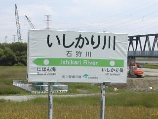 好天に誘われてお散歩カメラ。石狩川堤防へ行ってみてびっくり。突如駅名標ならぬ川名標が出現。しかし石狩岳から日本海とはなんと雄大な(笑)。
