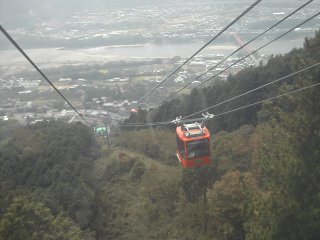 登るにつれ、眼下に吉野川の眺めが開けてくる。赤い搬器と離合。両耳のようなフニテル式特有の握索器がかわいい。