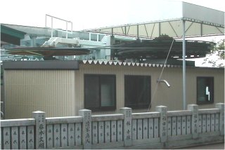 もと中間乗り継ぎ駅のあった仁王門を過ぎたところ。それこそ門のような支柱の右側にある小さな塔のすぐ右手の平らなところが旧駅跡とのこと。