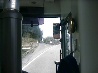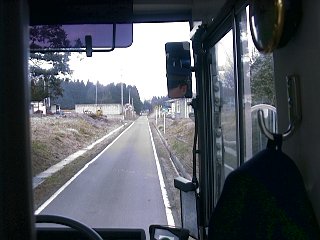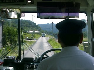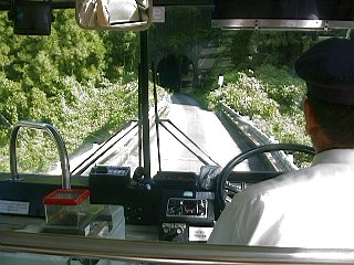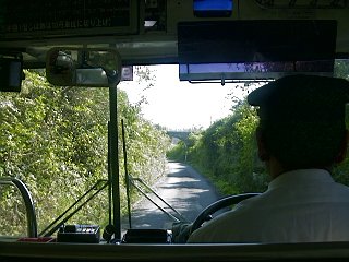 対向バスとの交換。道路は単線?なので交換箇所が設けてあるのは鉄道みたい。