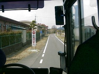 福島県の白棚線は対照的に開けた田園を行く。開けているぶん線路跡は道路と一体化して失われている部分が多く、バスは一般道路から専用区間に出たりはいったりする。磐城棚倉からしばらく一般道路を走って専用区間への入り口。