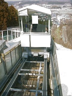 栃木県喜連川(きつれがわ)町の市街地からお丸山公園に上るためのシャトルエレベータ。