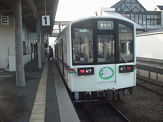 貴生川に到着し、折り返し八日市行きとなる222号単行。ライオンズのレオマーク入り。