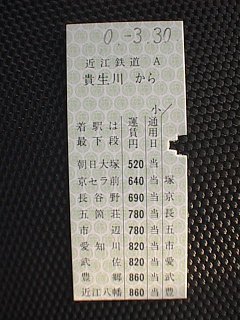 貴生川から近江八幡ゆきの発駅指定準常備硬券。