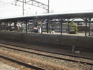 貴生川駅の乗り場。JR草津線から共用の跨線橋から連絡。券売機はなく手売りの硬券にはびっくり。