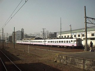 彦根駅ホームでの待ち時間に、おりしもすぐ横のJR線に貴重なDC急行「たかやま」が来た。