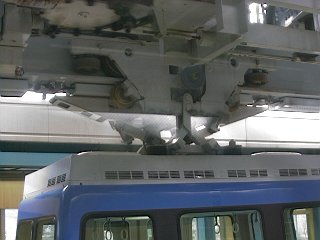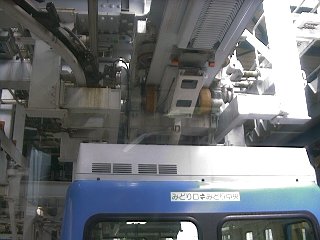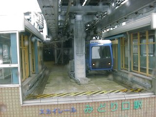軌道にぶら下がる部分を正面から見たところ。みどり口駅で。