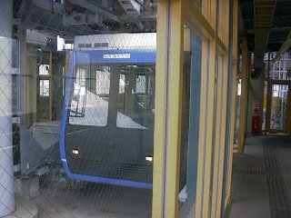 みどり口駅に停車?中の車両。まるでロープウェイの搬器。定員は25名(そんなに乗れるのか)。