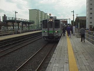 仮下りホームに到着したキハ142他3連(あいの里公園行き1561D)。