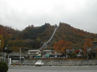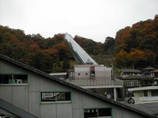 山麓駅。残念ながらこちらのシャトル桂台は運休中で乗ることはできなかった。問題が多く、しばしば運行中止という話はきいていたが…。少しずつ搬器を動かしながら作業員が何やら点検していた。