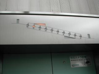 ドア上の表示。斜行エレベータらしく搬器位置が斜面上に示される。