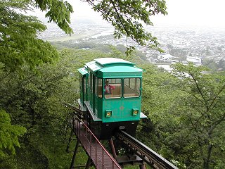 スロープカーというのは、いってみれば斜面を登る小規模なモノレールで、結構あちこちにあります。前に行ったけど乗れなかった猿橋のもこれですね。天橋立ビューランドのように全国版時刻表に載っているものはまれで、ほとんど網羅的な資料がなく乗り歩くのもなかなか大変です。ゴルフ場にあったり霊園にあったりもするし(笑)。仙台近郊の船岡城址にあるやつが東北一長いという触れ込みなので、行ってみました。でも、その余勢を駆って訪れた青森のウェスパ椿山の方がどう見ても長いような...。青森は東北じゃないのか(笑)。