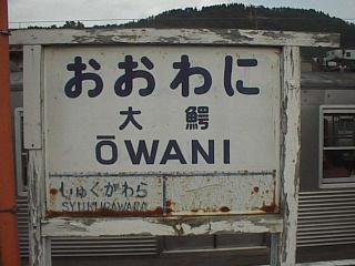 大鰐駅の旧型駅名標。