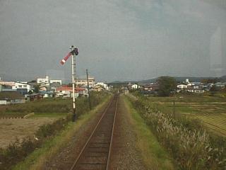 金木駅に進入する下り列車より。場内進行。