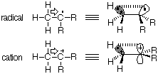 共役といえば、動きやすいπ電子の連続的な連なりによる電子の非局在化のことだが、σ電子の部分的供与による弱い共役というものもある。電子不足のラジカルやカチオンに隣接したアルキル基のσ結合から部分的に電子が供与されると、ラジカルやカチオンがいくぶん安定化される。このσ電子の供与を超共役という。