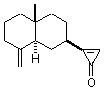 当然のことながら天然由来のシクロプロペノンは大変珍しく、今回の化合物が4,5例目だそうです。前にベルリンの故Bohlmannがセスキテルペンのイソプロピル側鎖がシクロプロペノンになったやつを報告していたのを原報で読んで驚いたのを思い出しました。余談ですが、ひところのBohlmann、Zdero一派の精力的な植物成分研究はすごかったです。Phytochemistry誌なんかに毎号10報くらいずつ載ってたりして(^^;。