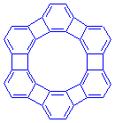 前にでてきたベンゼン・オブ・ベンゼン、ケクレンにちょっと似ています。ねじれもないし平面で安定そうな分子に見えます。実はこの分子、その名もアンチケクレン(antikekulene)は私の知る限りまだ合成されていません。電子が非局在化すると不安定になる反芳香族のシクロブタジエン環が平面構造では不利になることと、分子全体の外周が24π系、内周が12π系といずれも反芳香族になるために大環状アヌレン形もとれないためと思われます(ちなみにケクレンは外周30π、内周18πのいずれも芳香族)。